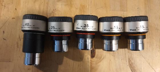 Je vends ces oculaires de la serie vixen NLV, verre lanthane, tres neutre au niveau des teintes, très confortables. La bonette est rétractable, ils sont de très bonne qualité, quelques marques d'usure sur le corps des oculaires.