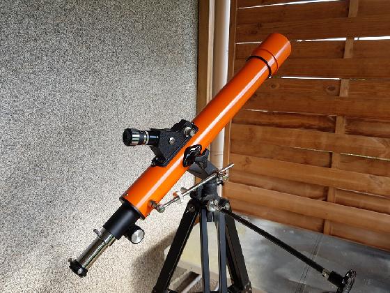 Repeinte en orange Celestron (3 couche, avec couche d’apprêt), nettoyage du viseur a prisme, peinture des pièce noir qui en avait besoin, nettoyage complet.