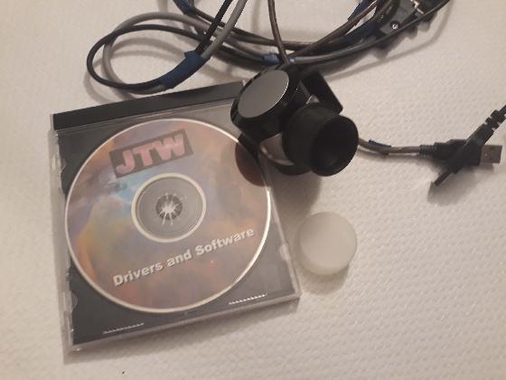Livré avec CD d’installation JTW (logiciels, drivers de capture et traitements) Tutoriel d’installation disponible sur le CD d’origine (readme). Un test sous SharpCap dernière version / windows 10 a été effectué et permet une utilisation standard de la caméra (test hors pose longue. La pose longue est très dépendante des configurations logicielles et hardware utilisés, donc non garantie)