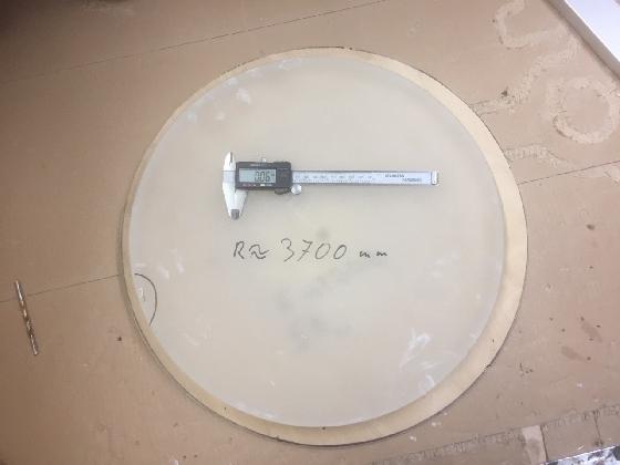 Rayon de courbure mesuré au sphéromètre (face concave à polir) : 3700 mm.