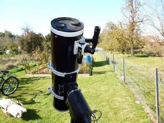Je l’ai équipé du système Ez push to, système similaire à l’inteliscope de chez Orion, il suffit de pousser pour trouver sa cible.... Le tout est visualisable sur téléphone, application Androïde ou Apple. J’ai fabriqué un support pour le téléphone.