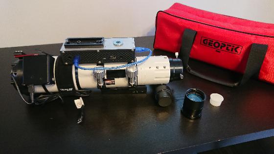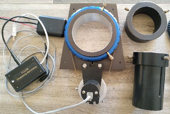 Lunette + Aplanisseur (TSFLAT2'') + Bague d'adaptation (pour backfocus Canon EOS) + FlipFlat motorisé (fabrication maison) + Système informatique embarqué* + résistance chauffante usb (5v)