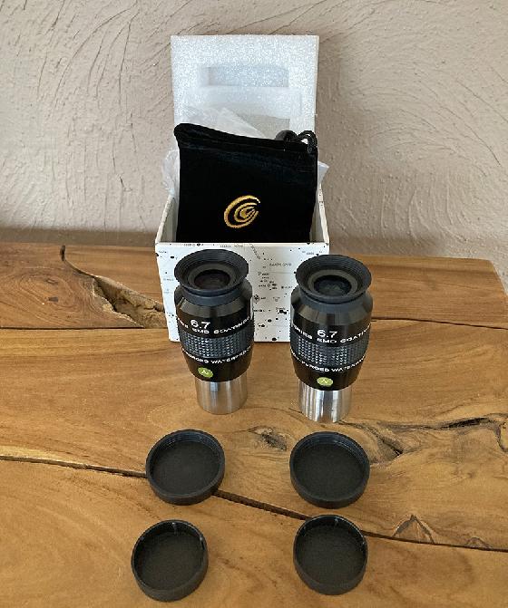 [Satisfait] Paire d'ES 6,7mm 82° pour binoPrix: voir détailsBas-Rhinle 31-03-2022 par HAlfieVds une paire d’oculaires Explore Scientific 6,7mm 82° gaz argon en excellent état, un avec boîte et bouchons et l’autre avec bouchons mais sans la boîte. Ils ont un excellent rapport qualité/prix et réagissent bien à F/D court sur un Dobson contrairement à de nombreux oculaires (hormis les Televue 2 à 3x plus chers).