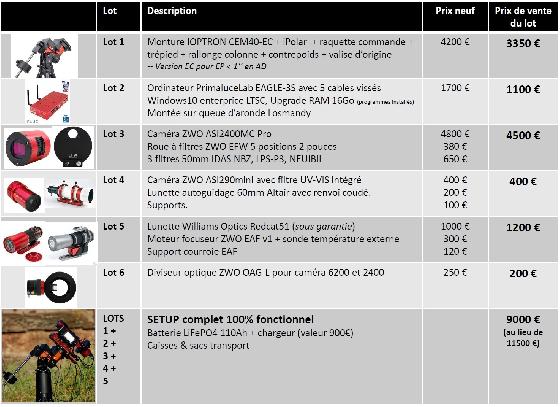 Bonne soirée.Sommele 08-07-2022 par Thomas.LspnJe cherche une monture équatoriale heq5 pro goto (si possible avec adaptateur wifi) avec un tube de type newton 150/750Loire Atlantiquele 19-08-2022 par vincent.vRecherche correcteur de coma televue paracorr II ou explore scientific HR complet en bon état.