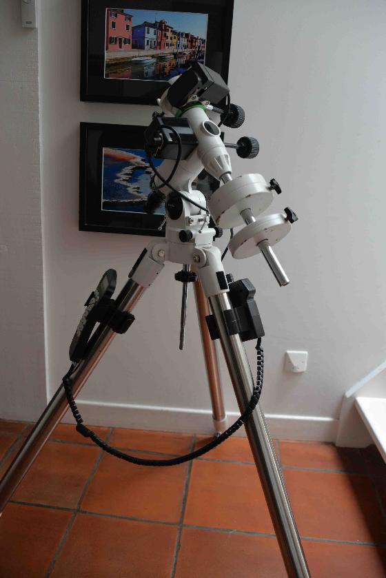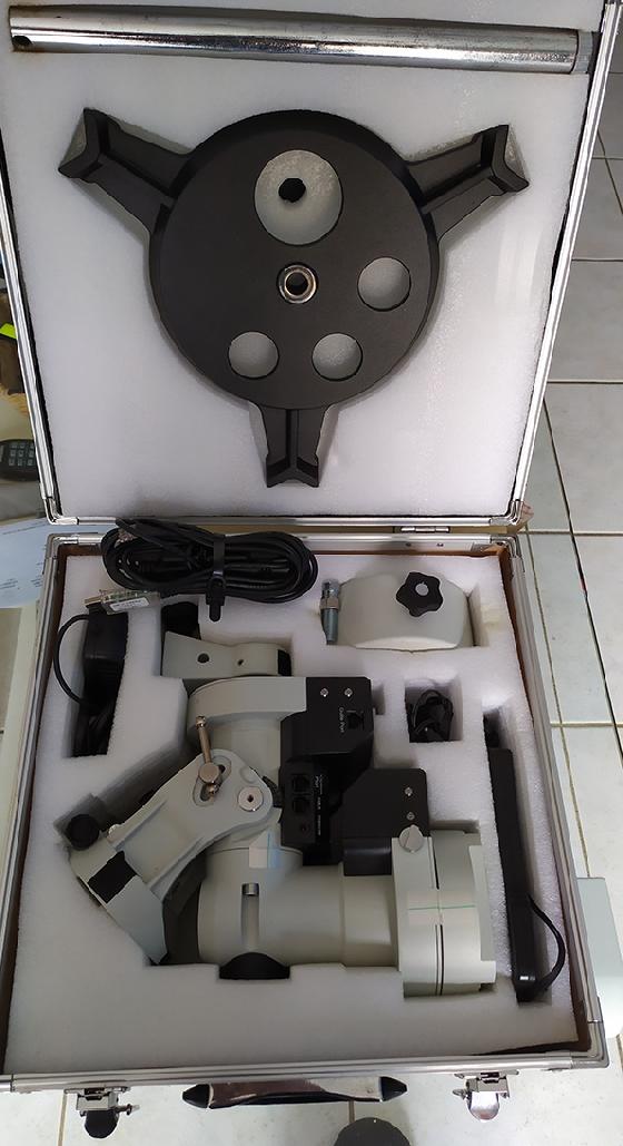 Seine Maritimele 05-04-2021 par DtanguyVente d’une monture EQ-3.2 motorisée avec GOTO, elle est aussi fournie avec viseur polaire (non compris neuf) et trépied acier (plus solide et robuste que les trépied alu). Etant souvent entretenu (nettoyage, graissage, correction des jeu…), elle est toujours en très bonne état de fonctionnement (cf dernière photo prise avec). Une seule pièce est manquante, la vis d’arrêt à la fin de la barre contrepoids, cependant la surface des vis de pression des contrepoids n’étant pas matées, cela ne constitue pas un problème (les contrepoids ne glisseront pas). Elle est prête à l'emplois, il ne manque qu'une optique et une batterie.