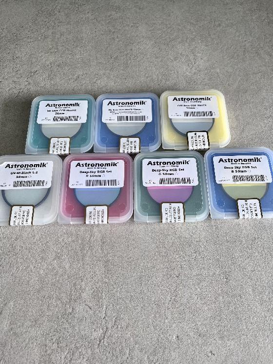 Astronomik Set complet SHO-LRGB MaxFR 50mm - NEUFPrix: voir détailsSuisse Romandele 31-05-2023 par rkas12Je mets en vente le set de filtres de la marque Astronomik ci-dessous que j'ai acquis en Octobre 2022. Ces derniers n'ont jamais été utilisé - ils sont neufs.