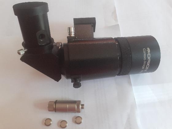1 chercheur 9x50 Orion avec renvoi coudé 45° équipé d'un oculaire réticulé éclairé 80€