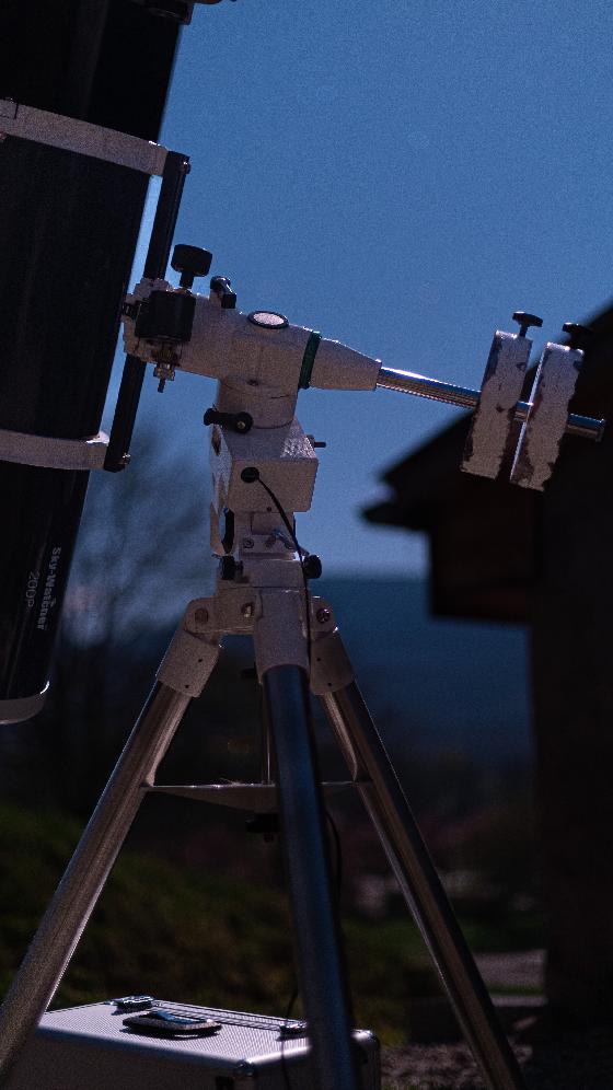 En plus de la monture équatoriale, j'ai également ajouté un viseur polaire, un éclairage pour le viseur polaire et une valise de rangement en aluminium pour le transport et le stockage en toute sécurité.