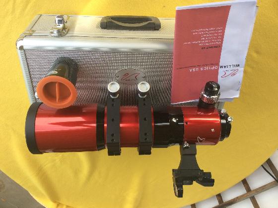 Parisle 10-10-2023 par KaptainModèle anniversaire laqué rouge, 80mm, focale 545mm F/6,8, mise au point 1/10, queue d'aronde Vixen, avec prolongateur 2 pouces, chercheur point rouge et valise de transport aluminium.