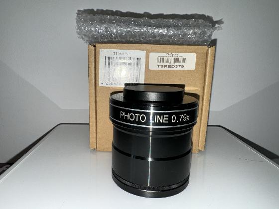Je vends un Réducteur/aplatisseur TS Optics 0,79x 3'' (3 éléments avec verres ED) pour lunette apo et ed couvrant jusqu'au plein format, j'ai mis du velours noir en entrée et sortie du réducteur pour éviter touts reflets.