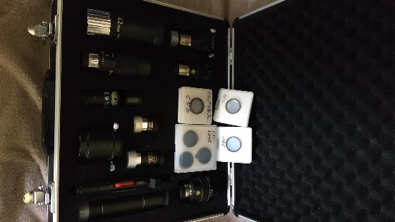 malette contenant oculaires explore scientific 6,7mm 82° , ES 24mm 68° et ES barlow x2 , 1 oculaire zoom celestron 8-24mm , oculaire 42mm , filtres explore sientific UHC et OIII , filtre omegon CLS et un filtre double polarisant reglable , un laser de collimation et un chesshire ,le prix total du lot en neuf plus de 900 euros je le laisse a moitié prix 450euros , les oculaires explore scientific et la barlow sont neufs et avec leur boite d'origine