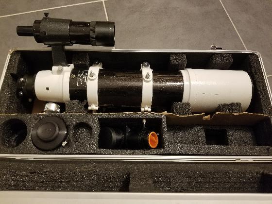 Bouches du Rhônele 28-11-2021 par stefan56Lunette apochromatique Skywatcher ED80/600 EvoStar D.S. avec accessoires et valise de transport, l’ensemble en très bon état et sans défaut. Le pare buée à quelques traces d’utilisation (voir photo ci-jointe). Peu utilisé, est le motif de cette vente.