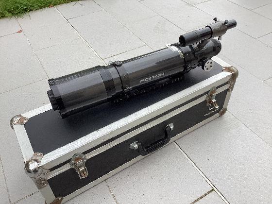 je mets en vente ma lunette Orion 80ED en assez bon état. Quelques traces d’usure du à l’âge , elle est fourni avec la malette( en bon état ) . Elle possède une démultiplication Lacerta, un chercheur 6x30, une bague de serrage annulaire en 2 pouces ,une bague de réduction 1.25 a serrage circulaire et une queue d’aronde format Vixen de marque Losmandy.