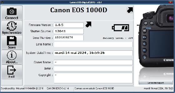 Vendu avec courroie canon, bouchon de fermeture, 1 carte SD de 4G0, 2 batteries et chargeur.