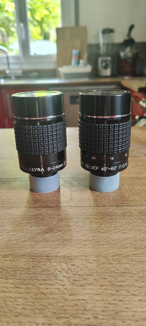 Val d`Oisele 13-06-2024 par RikhRécupérés dans un lot, je les cèdes car je n'en aurais personnellement pas l'utilité (doublons). Comme le montre les photos, ils sont dans un superbe état et n'ont pas dû beaucoup servir à mon avis. Distribués exclusivement par Flo en GB, ils ont de beaux arguments à faire valoir dont la parafocalitée sur toute la plage, lentilles en verre Lanthane pour réduire l'aberration chromatique et un dégagement oculaire de 20mm (protection oculaire rabattable à 4 positions):