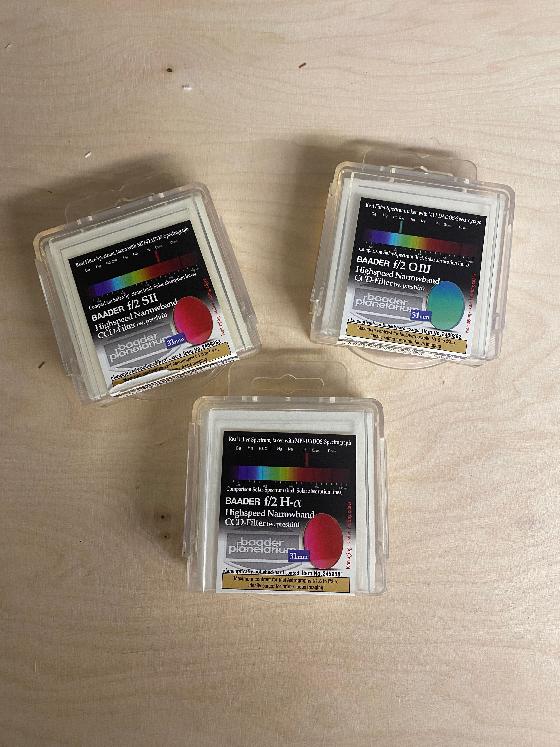 Mosellele 10-06-2024 par Manu57a vendre le set de 3 filtres baader highspeed F/2 ( SII,OIII & Ha) en 31mm non montés.