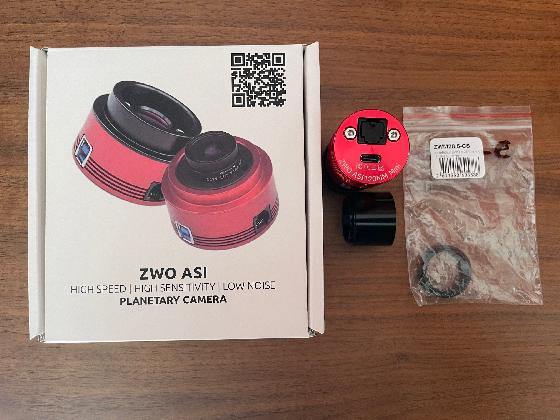 - caméra monochrome ASI mini 120 dans sa boîte avec l'ensemble des accessoires