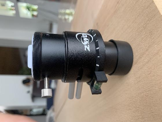 porte-oculaire avec anneau en laiton de 2" ; longue barre Vixen ; base de recherche ; chercheur complet Tecnosky 8x50 avec support ; filetage d'extrémité de tube/culasse M58, capuchon avant en métal.