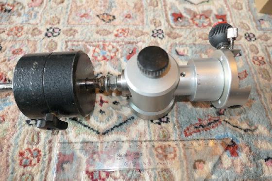 30mm ultra lightweight, fixation vixens style, porte oculaire réglable (10mm de débattement mise au point), mise au point également a la lentille. Possibilité de s'en servir comme chercheur avec un oculaire 1.25". Le gros avantage de ce dispositif est qu'il est très léger 260Grs et que le diamètre est suffisant pour capter les étoiles même relativement faible pour votre suivi.