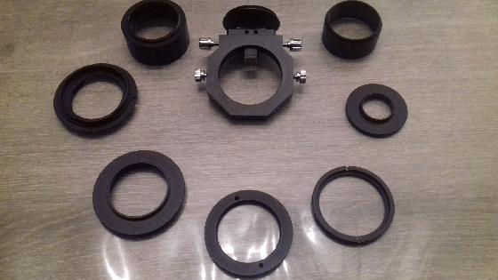 Retirer le groupe de lentilles négatives fait apparaître un pas femelle M 48 à l’extrémité du barillet de 50,8 mm. Celui-ci permet d’utiliser de grands filtres antipollution et des filtres spéciaux pour observer les nébuleuses par exemple.