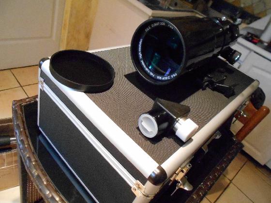 vendue avec colliers WO 90mm, queue aronde standard losmandy, renvoi coudé diélectrique WO, chercheur point rouge WO, tube extension, mallette souple de transport WO