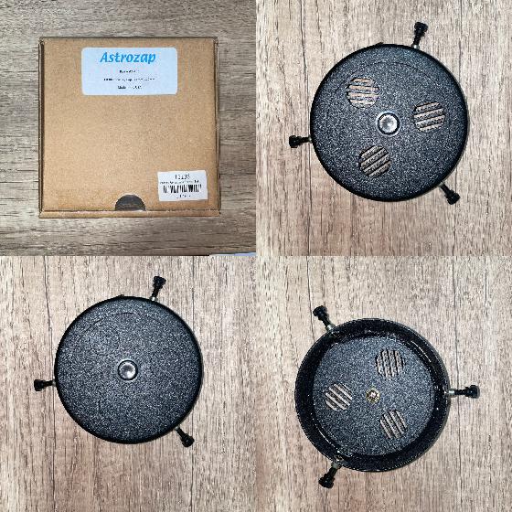 Suite à la vente de ma 80ED, je me sépare de mon masque de Bahtinov qui fait également office de cache poussière. Masque en alu avec un revêtement en époxy noir.