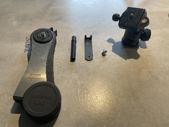 Fournie avec la rotule, le "tube" viseur polaire, la clé et l'adaptateur.