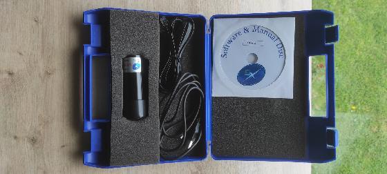La caméra est vendue complète avec sa mallette, les drivers sur cd d’origine et les cables usb et RJ (autoguidage).