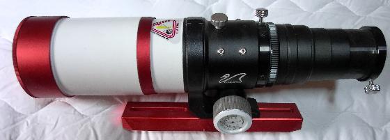 APO doublet fluorite (FPL53), 61/360 (f5.9) + correcteur de champs externe. Les deux items sont normalement vendus séparemment (environ 600€ et 300€ respectivement).