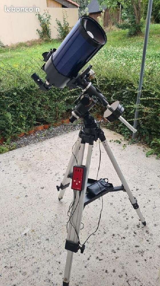 Quelques défauts esthétique mais pleinement opérationnel, optique nickel. Avec quelques accessoires (renvoi coudé, 2 oculaires 20 et 10 mm plossl, adaptateur photo, pare buée .