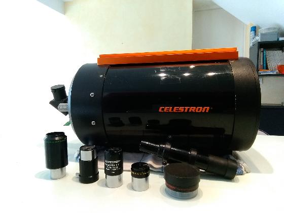 – un tube Celestron C11 (formule optique Schmidt Cassegrin) de diamètre 280 mm pour une focale de 2800 mm compatible fastar et traité Starbright XLT. La queue d’aronde orange présente sur la photo n’est pas vendue avec.