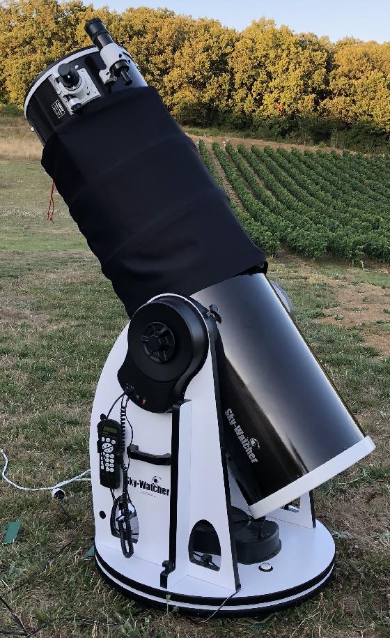Le télescope est vendu avec sa jupe réalisée sur mesure et ses deux oculaires de 24 et 10 mm. Le télescope a toujours été stocké à l’intérieur.
