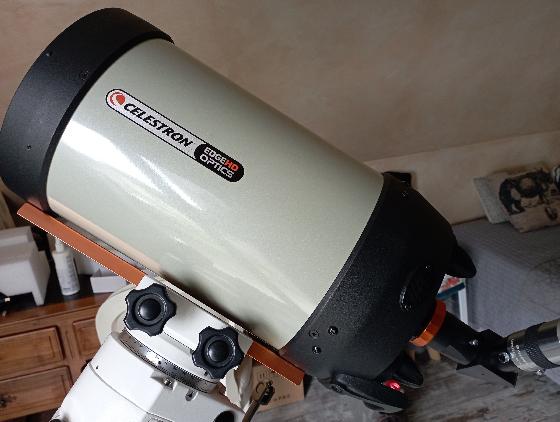 Diamètre 90 ,longueur focale de 910, sur monture équatoriale.