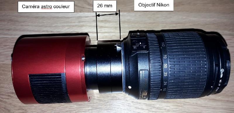 D'un côté on monte un objectif Nikon de l'autre une caméra couleur astronomie.