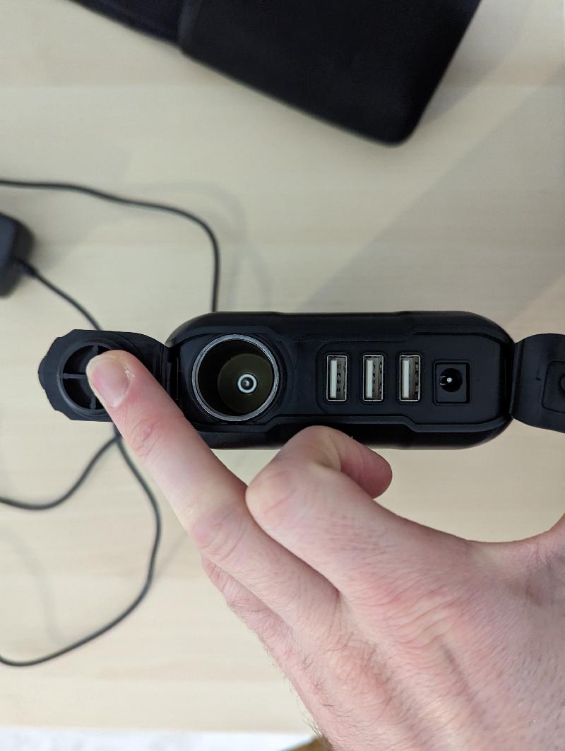 Connecteur de sortie (mm)2x prise DC pour allume-cigare (12V), 2x USB (5V / 1,5A)