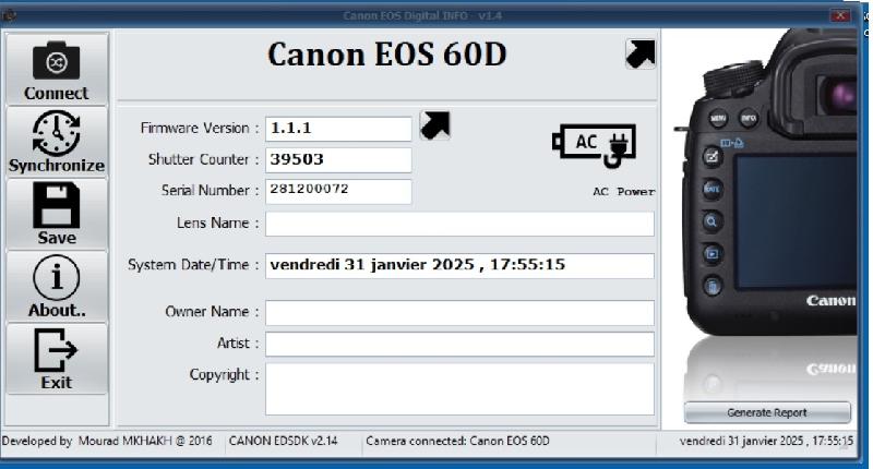 Vend Canon EOSDA construit pour l'astronomie (le A de 60DA).