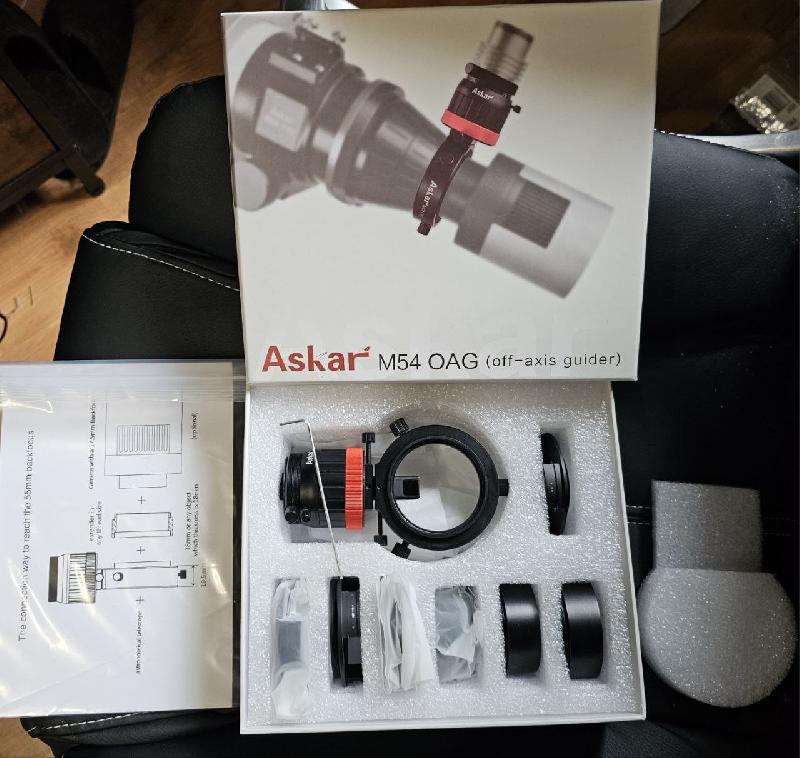 Suite au passage à l'OAG-L Zwo, je vends cet OAG askar M54 dans sa boîte d'origine avec l'intégralité de ses accessoires.