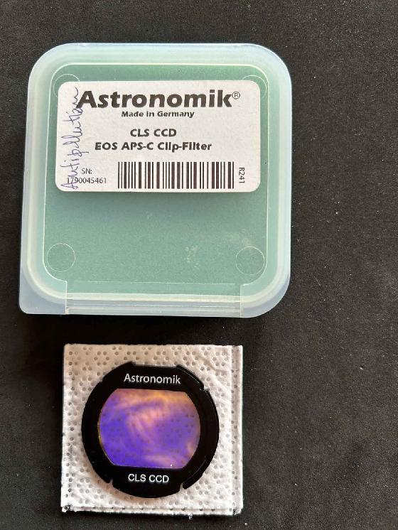 Filtre clip antipollutionPrix: 120€Tarnle 19-12-2025 par Jean louis DryeFiltre Astronomik anti pollution lumineuse CLS CCD clip pour Canon EOS APS-C