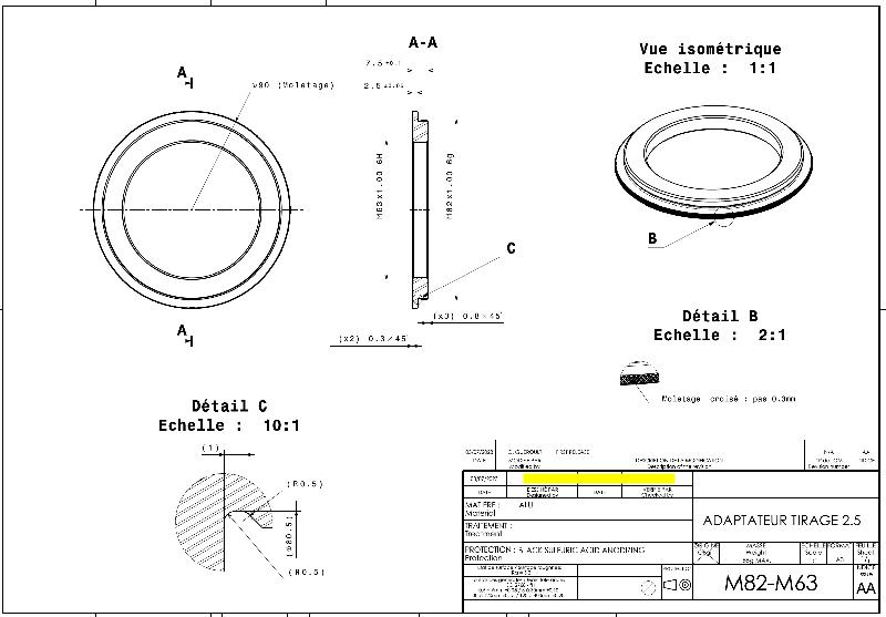 1 - Une bague skymeca faite sur mesure neuve (au milieu de la photo) M82m-M63f :105 euros