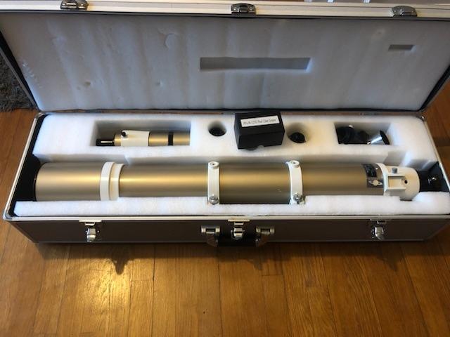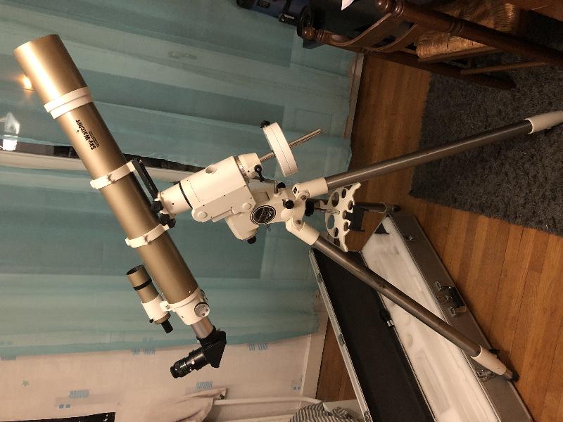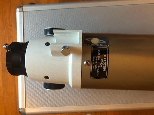 Vends lunette Skywatcher 100ED pour cause de doublon avec mon instrument actuel. La lunette est en excellent état optique et très bon état cosmétique.