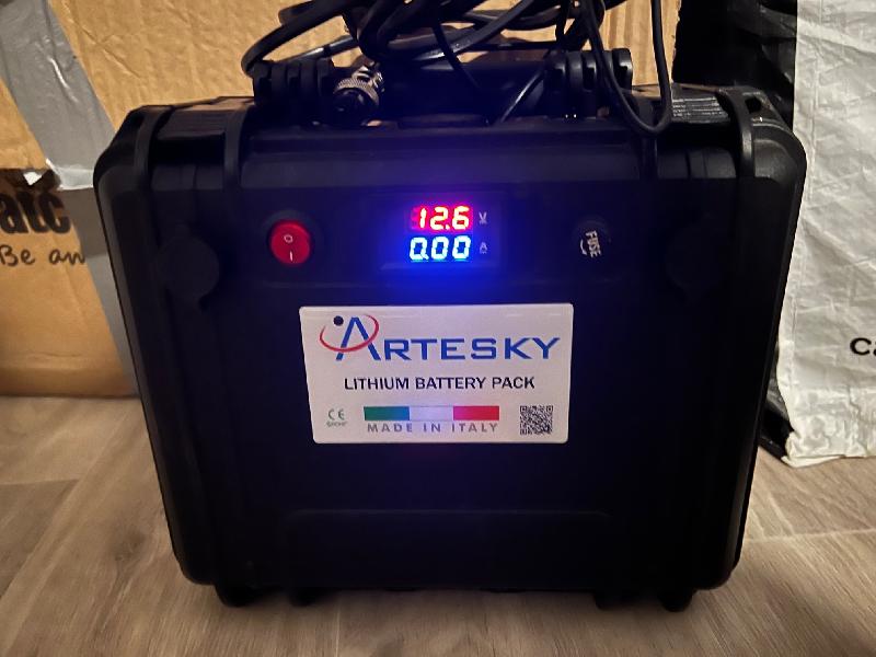 Pour la durée d'utilisation, avec une lunette + une caméra refroidie + deux résistances 12v + un Asiair + une monture EQ6 ça tient environ 6 heures tout à fond en hiver! En été un peu plus!