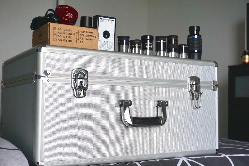 - Différents occulaires : Celestron Plossl 25 mm, Barlow Mead x3, Astro Professional 5mm, Mead 4mm, Mead super Plossl 9,7mm, Mead 25 mm, Mead 12mm