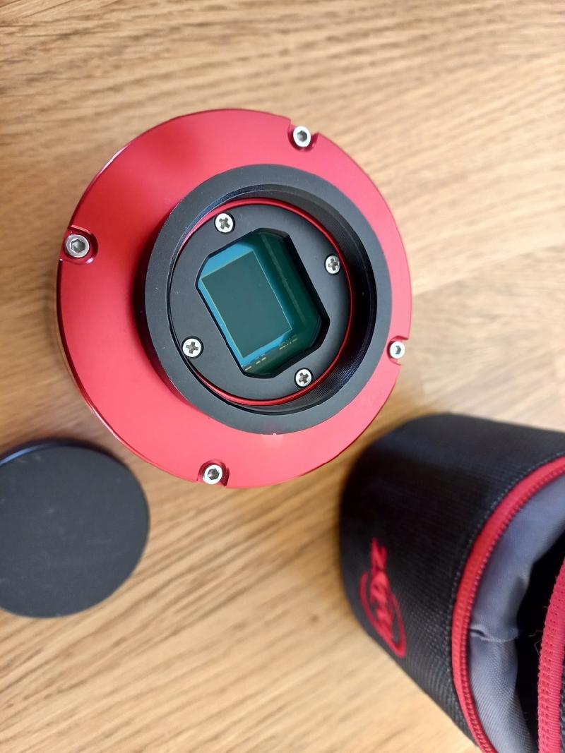 En pj 2 photos de la caméra + cliché pris le 31 janvier 2024 de M42 et Barnard 33 avec cette caméra et filtre Optolong L-Pro 200, sur monture SW EQ6-R, avec guidage