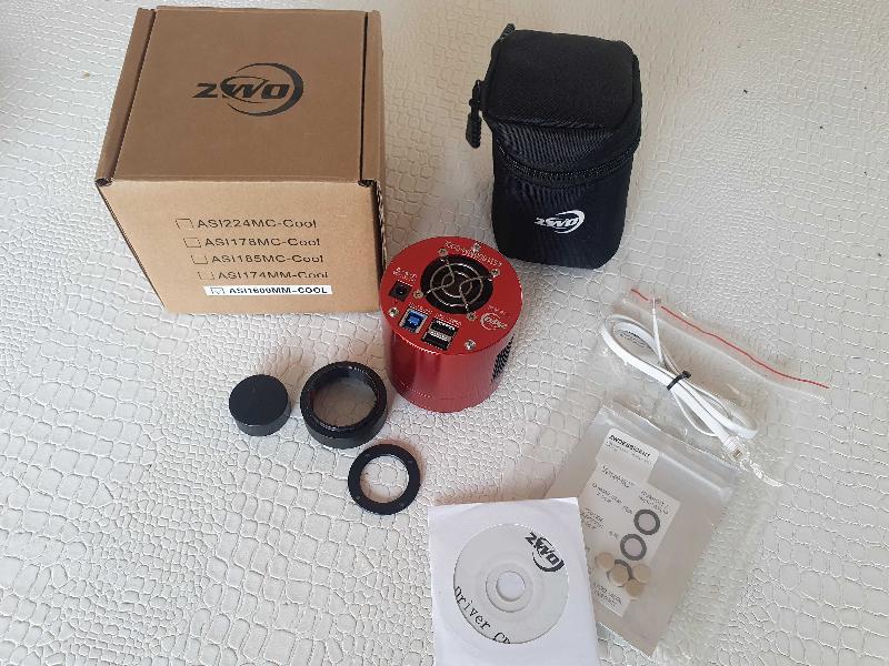 Caméra refroidie monochrome ZWO ASI1600MM - Capteur CMOS – Diagonale : 21.9mm - Résolution : 4656 x 3520 pixels de 3,8µ. Connexion USB 3.0