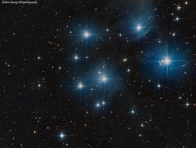 ps : il y a quelques colonnes morte mais se retire bien au traitement ou en faisant du dithering je joint une photo d'un offset + M45 réalisé avec cette caméra et ces colonnes morte.