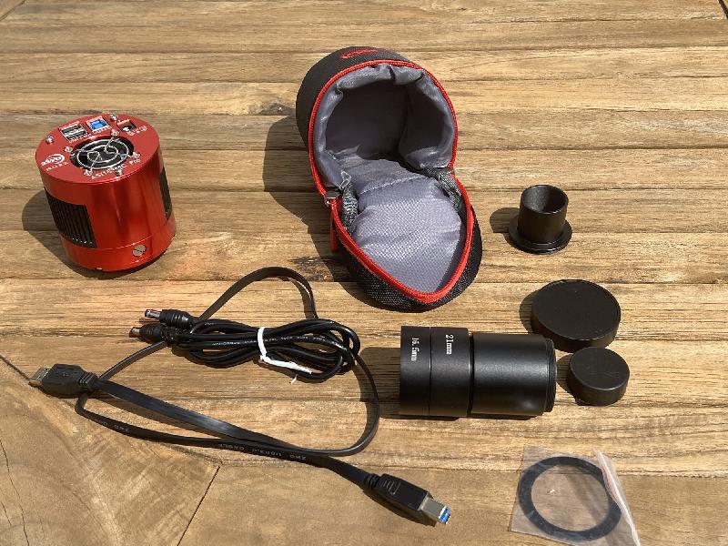 Caméra refroidie couleur ASI183MC Pro ZWO (référence ZWASI183MC-P chez PierroAstro). Ce modèle est équipé d'un capteur au format 4/3 avec 20M pixels.