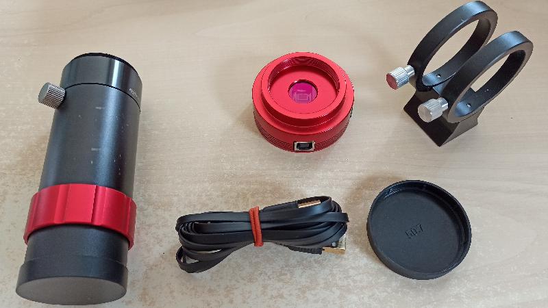 Vends caméra ZWO ASI 120 MC avec câble USB et bouchon obturateur sans objectif + lunette de guidage.
