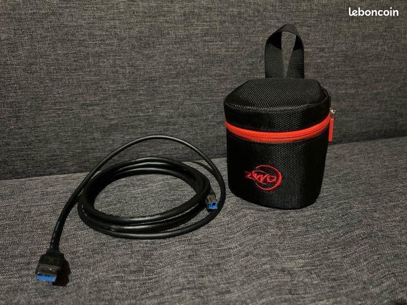 La caméra est en très bon état et comprend le bouchon, la pochette et le câble USB 3 (voir photos).