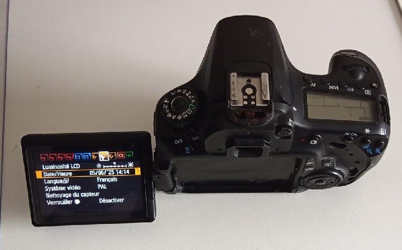 Vendu avec adaptateur format 1,25", fausse batterie alimentée secteur, cable USB, batterie et chargeur, carte SD de 16 Go. Pour 20 € j'ajoute un zoom 75/300, dont l'autofocus ne fonctionne pas. Sans importance pour l'astrophoto.
