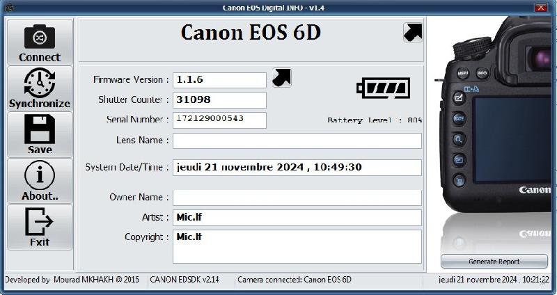 Canon 6D refiltré Astrodon par R. Galli, avec filtre CLS, grip batterie, 8 accus, chargeurs, 31098 clics